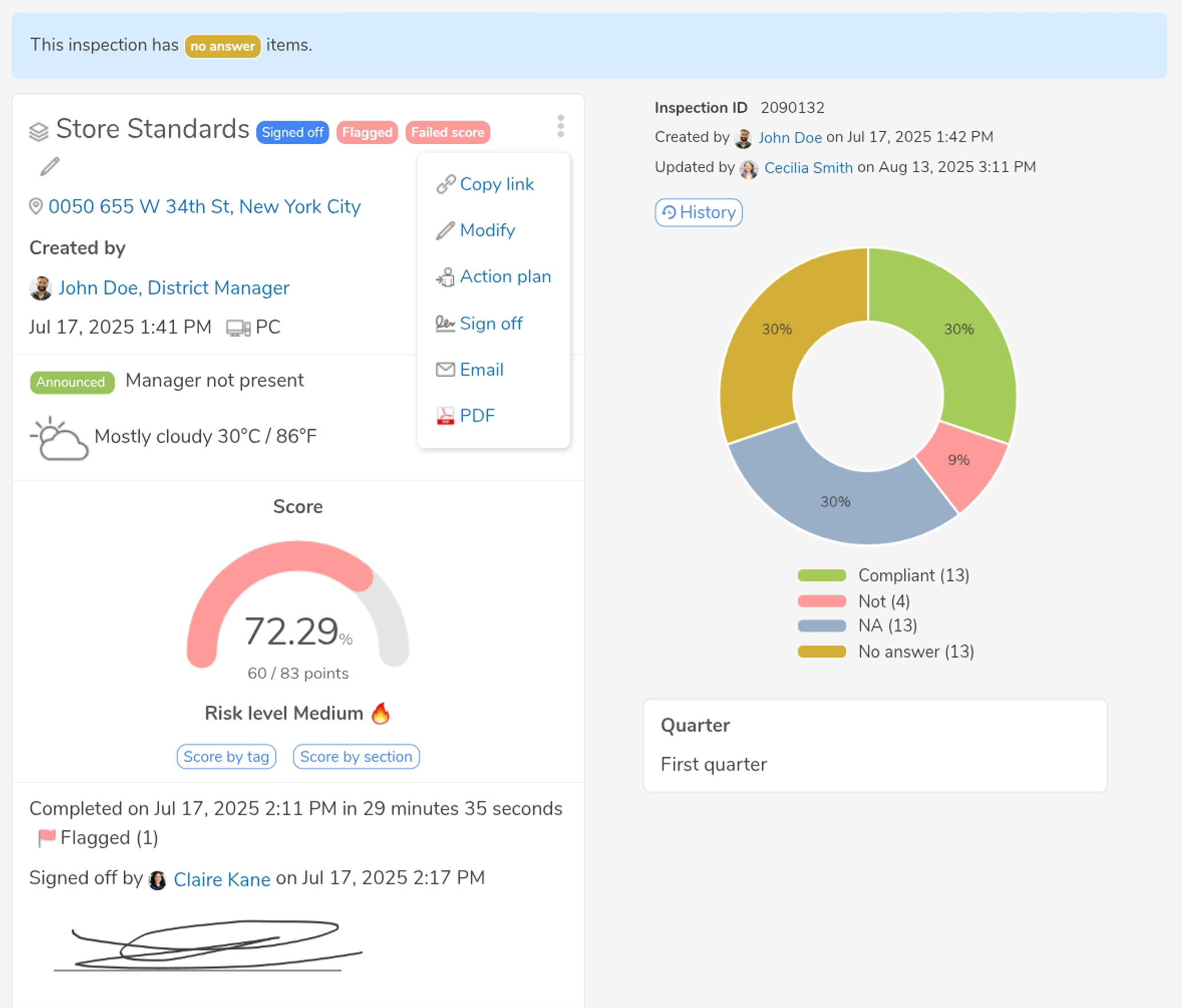 Take photos, videos, and share notes. Attach photos to inspections, tasks, and corrective actions. A picture is worth a thousand words.