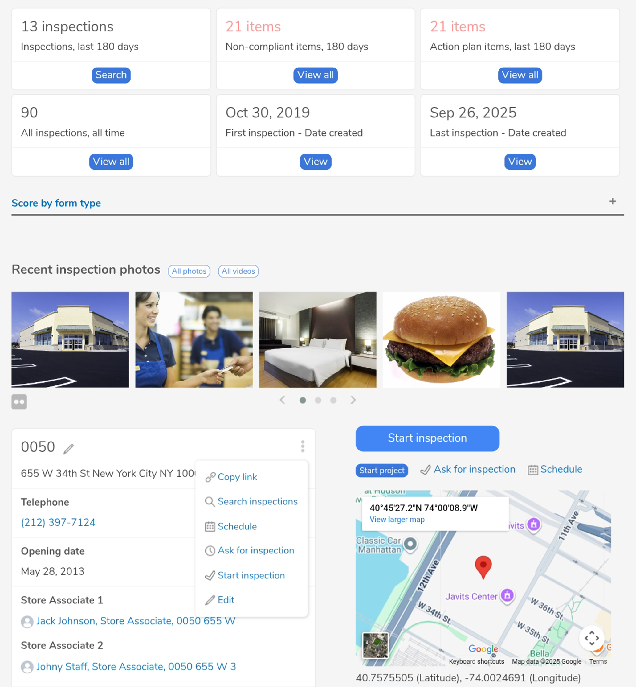 Schedule inspections. Built-in store affiliation lets you choose who can use what forms and where.
